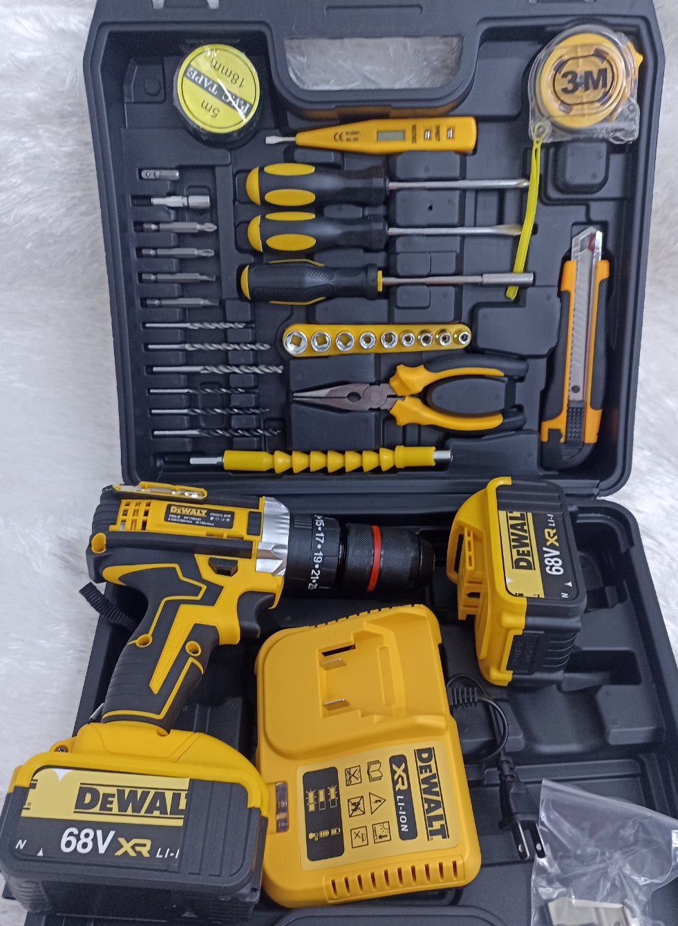 Taladro de 68 voltios Mandril metálico de media Con percutor 2 velocidades Pila gruesaAsesorios Estuche No son originales son replicas